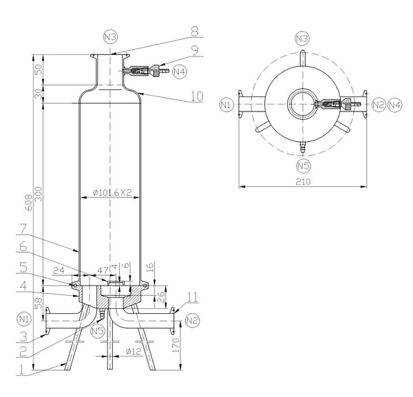 - Bình lọc nước sạch y tế chất liệu: SS304, SS316, SS316L