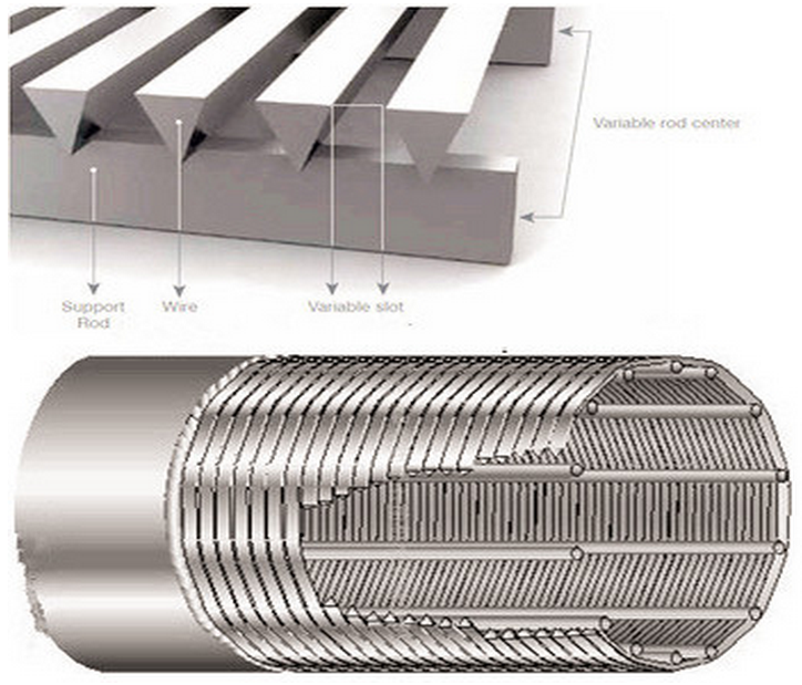 2. Các hình thành của một hình thang (wedge) cho cần tiếp tục hỗ trợ cuộn dây dây sắp xếp loại mật độ cao khoảng cách thống nhất liên tục, để đảm bảo rằng tỷ lệ diện tích bề mặt lớn và không làm tắc và tránh chặn mật độ cao gây sự tích tụ quá lớn cặn bẩn , để tăng năng suất và kéo dài tuổi thọ của giếng để cung cấp một đảm bảo.
